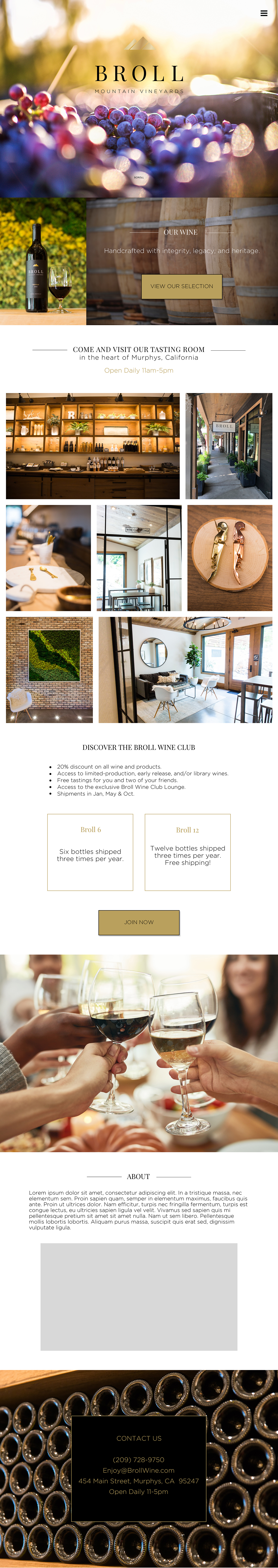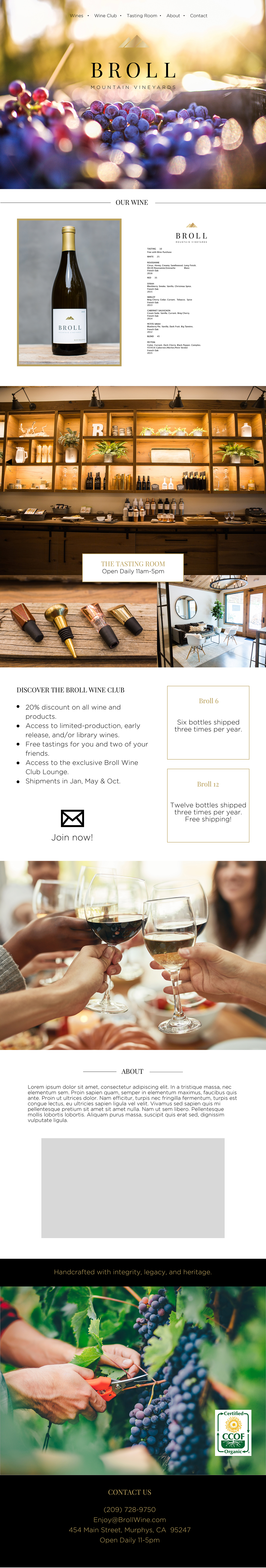 Broll Mountain Vineyards had been looking to redesign their outdated website for years. With the remodel of their wine store in Murphys, CA, they also needed a fresh new way to showcase their strong brand image online.